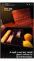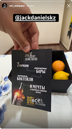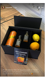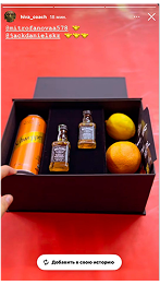 - Доставлены брендированные боксы: коробка, открытка с условиями акции, 2 мини-бутылки Jack Daniel’s, Schweppes мандариновый, апельсин, лимон.